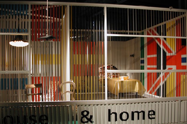 de lamellen, gelijkend op europese vlaggen, vormden samen het huis.