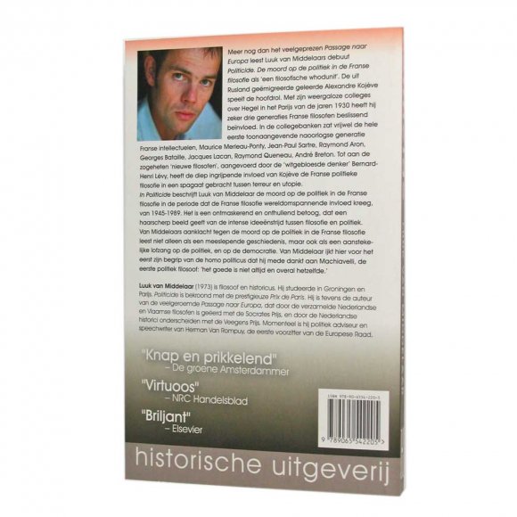 Meer nog dan het veelgeprezen Passage naar Europa leest Luuk van Middelaars debuut Politicide. De moord op de politiek in de Franse filosofie als ’een filosofische whodunnit’. De uit Rusland geëmigreerde filosofieprofessor Alexandre Kojève speelt de hoofdrol. Met zijn weergaloze colleges over Hegel in het Parijs van de jaren 1930 zou hij de Franse filosofie beslissend beïnvloeden. In de collegebanken zat vrijwel de hele nieuwe generatie Franse intellectuelen, Maurice Merleau-Ponty, Jean-Paul Sartre, Raymond Aron, Georges Bataille, Jacques Lacan, Raymond Queneau en André Breton. Tot aan de zogeheten ’Nieuwe filosofen’, aangevoerd door de ’witgebloesde denker’ Bernard-Henri Lévy, heeft de diepingrijpende invloed van Kojève de Franse politieke filosofie in een spagaat gebracht tussen terreur en utopie. In Politicide beschrijft Luuk van Middelaar de moord op de politiek in de Franse filosofie in de periode dat de Franse filosofie wereldomspannende invloed kreeg, van 1945-1989. Het is een ontmaskerend en onthullend betoog, dat een haarscherp beeld geeft van de intense ideeënstrijd tussen filosofie en politiek. Van Middelaars aanklacht tegen de moord op de politiek in de Franse filosofie leest niet alleen als een meeslepende geschiedenis, maar ook als een aanstekelijke lofzang op de politiek. Van Middelaar ijkt hier voor het eerst zijn begrip van de homo politicus dat hij mede dankt aan Machiavelli, de eerste politiek filosoof: ’het goede is niet altijd en overal hetzelfde.’ Luuk van Middelaar (1973) is filosoof en historicus. Hij studeerde in Groningen en Parijs. Sinds zijn debuut Politicide (1999), bekroond met de prestigieuze Prix de Paris, verwierf de ’toonaangevend politiek filosoof’ een invloedrijke stem in het publieke debat. Vanaf 2000 was hij politiek adviseur in Brussel en in Den Haag. Kort na publicatie van De passage naar Europa (2009)werd Luuk van Middelaar speechwriter en politiek adviseur van Herman Van Rompuy, de voorzitter van de Europese Raad. Zelden zat de geschiedenis van Europa zo dicht aan tafel naast haar toekomst! |