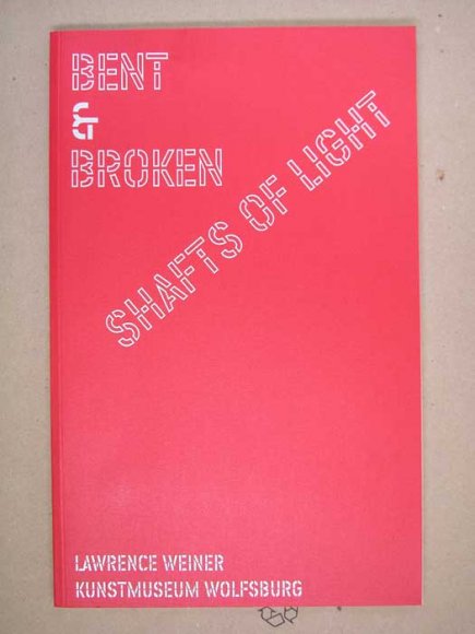 Bend & Broken Shafts Of Light was an exhibition at the Kunstmuseum Wolfsburg in 2000. This book is a collaboration with Lawrence Weiner and was designed to emphasize the notion of light and color - in his poetic materialistic texts - through means of paper transparency. The cover is - because of its apparent ’cheapness’ - based on the material of the Dutch passport at the time. Lawrence Weiner (born February 10, 1942) is one of the central figures in the formation of conceptual art in the 1960s [1] His work often takes the form of typographic texts. Weiner is regarded as a founding figure of Postminimalism’s Conceptual arm, which includes artists like Douglas Huebler, Robert Barry, Joseph Kosuth, and Sol LeWitt.[4] Weiner began his career as an artist as a very young man at the height of Abstract Expressionism. His debut public work/exhibition was at the age of 19, with what he called Cratering Piece. An action piece, the work consisted of explosives set to ignite simultaneously in the four corners of a field in Marin County, California. That work, as Weiner later developed his practice as a painter, became an epiphany for the turning point in his career.[5] His work in the early 1960s included six years of making explosions in the landscape of California to create craters as individual sculptures.[6] He is also known during his early work for creating gestures described in simple statements leading to the ambiguity of whether the artwork was the gesture or the statement describing the gesture: e.g."Two minutes of spray paint directly on the floor.." or " A 36" x 36" removal of lathing or support wall..." (both 1968). In 1968, when Sol LeWitt came up with his Paragraphs on Conceptual Art, Weiner formulated his "Declaration of Intent" (1968): 1. The artist may construct the piece. Each being equal and consistent with the intent of the artist the decision as to condition rests with the receiver upon the occasion of receivership. Weiner created his first book Statements in 1968, a small 64-page paperback with texts describing projects. Published by The Louis Kellner Foundation and Seth Siegelaub, "Statements" is considered one of the seminal conceptual artist’s books of the era. He was a contributor to the famous Xeroxbook also published by Seth Siegelaub in 1968. Weiner’s composed texts describe process, structure, and material, and though Weiner ’s work is almost exclusively language-based, he regards his practice as sculpture, citing the elements described in the texts as his materials.[7] An important aspect of audience participation in Weiner’s work is site-specificity. In SOME LIMESTONE SOME SANDSTONE ENCLOSED FOR SOME REASON (1993) he recast the iron weighbridge of the Dean Clough carpet factory, incorporating the words of the title as an embossing inscription.[8] Since the early 1970s, wall installations have been Weiner’s primary medium, and he has shown at the Leo Castelli gallery. Nevertheless, Weiner works in a wide variety of media, including video, film, books, sound art using audio tape, sculpture, performance art, installation art, and graphic art. In 2007, he participated at the symposium “Personal Structures Time-Space-Existence” a project which was initiated by the artist Rene Rietmeyer. In 2008 an excerpt from his opera with composer Peter Gordon – The Society Architect Ponders the Golden Gate Bridge – was issued on the compilation album Crosstalk: American Speech Music (Bridge Records) produced by Mendi + Keith Obadike. In 2009 he participated in the art project Find Me, by Gema Alava, in company of artists Robert Ryman, Merrill Wagner and Paul Kos. |